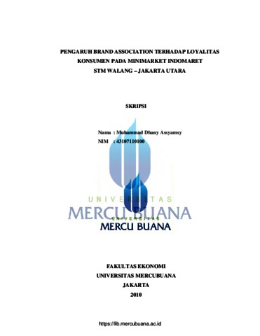 Assyamsy, Muhammad Dhany (2010) PENGARUH BRAND ASSOCIATION TERHADAP LOYALITAS KONSUMEN PADA MINIMARKET INDOMARET STM WALANG - JAKARTA UTARA. S1 thesis, Universitas Mercu Buana.