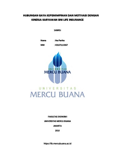 Pariha, Iha (2010) HUBUNGAN GAYA KEPEMIMPINAN DAN MOTIVASI DENGAN KINERJA BNI LIFE INSURANCE. S1 thesis, Universitas Mercu Buana.
