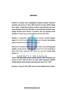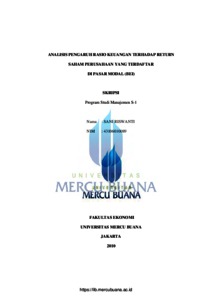 Riswanti, Sani (2010) ANALISIS PENGARUH RASIO KEUANGAN TERHADAP RETURN SAHAM PERUSAHAAN YANG TERDAFTAR DI PASAR MODAL (BEI). S1 thesis, Universitas Mercu Buana.
