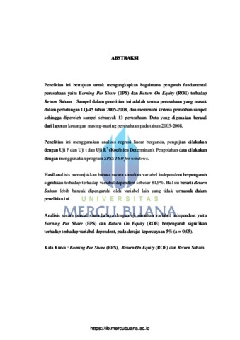Penelitian ini bertujuan untuk mengungkapkan bagaimana pengaruh fundamental perusahaan yaitu Earning Per Share (EPS) dan Return On Equity (ROE) terhadap Return Saham . Sampel dalam penelitian ini adalah semua perusahaan yang masuk dalam perhitungan LQ-45 tahun 2005-2008, dan memenuhi kriteria pemilihan sampel sehingga diperoleh sampel sebanyak 13 perusahaan. Data yang digunakan berasal dari laporan keuangan masing-masing perusahaan pada tahun 2005-2008. Penelitian ini menggunakan analisis regresi linear berganda, pengujian dilakukan dengan Uji F dan Uji t dan Uji R2 (Koefisien Determinan). Pengolahan data dilakukan dengan menggunakan program SPSS 16.0 for windows. Hasil analisis menunjukkan bahwa secara simultan variabel independent berpengaruh signifikan terhadap terhadap variabel dependent sebesar 81,9%. Hal ini berarti Return Saham lebih banyak dipengaruhi oleh variabel lain yang tidak termasuk dalam penelitian ini. Analisis secara parsial sama halnya dengan uji simultan variabel independent yaitu Earning Per Share (EPS) dan Return On Equity (ROE) berpengaruh signifikan terhadap terhadap variabel dependent, pada derajat kepercayaan 5% (a = 0,05). Kata Kunci : Earning Per Share (EPS), Return On Equity (ROE) dan Return Saham.