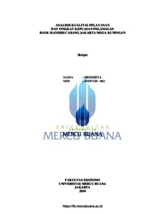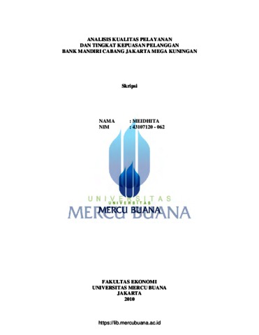 Meidhita, Meidhita (2010) ANALISIS KUALITAS PELAYANAN DAN TINGKAT KEPUASAN PELANGGAN BANK MANDIRI CABANG JAKARTA MEGA KUNINGAN. S1 thesis, Universitas Mercu Buana.