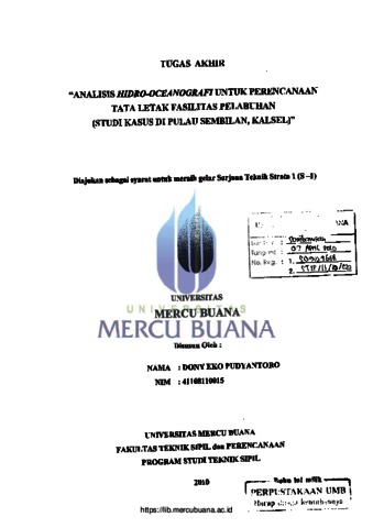 PUDYANTORO, DONNY EKO (2010) ANALISIS HIDRO-OCEANOGRAFI UNTUK PERENCANAAN TATA LETAK FASILITAS PELABUHAN (STUDI KASUS DI PULAU SEMBILAN, KALSEL). S1 thesis, Universitas Mercu Buana Jakarta.