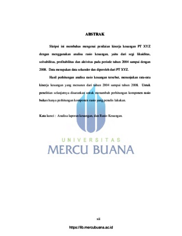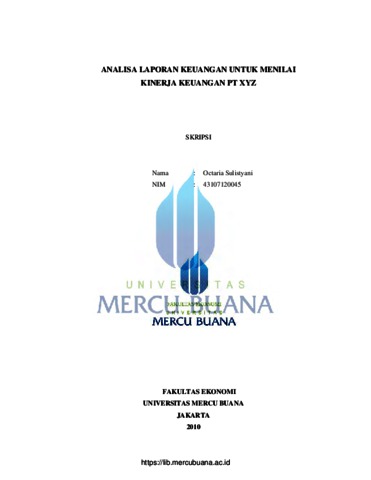 Sulistyani, Octaria (2010) ANALISA LAPORAN KEUANGAN UNTUK MENILAI KINERJA KEUANGAN PT. XYZ. S1 thesis, Universitas Mercu Buana.
