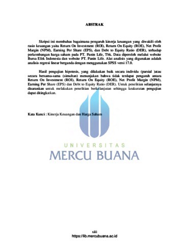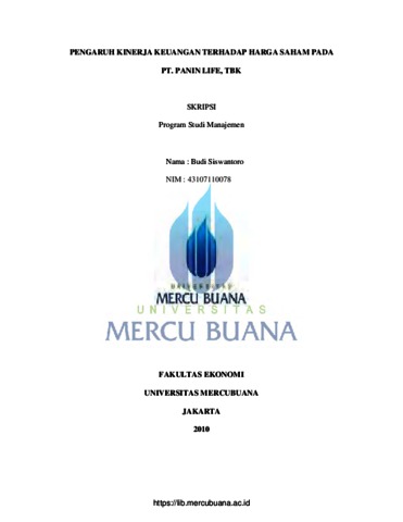 Siswantoro, Budi (2010) PENGARUH KINERJA KEUANGAN TERHADAP HARGA SAHAM PADA PT. PANIN LIFE, TBK. S1 thesis, Universitas Mercu Buana.