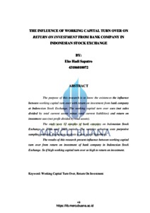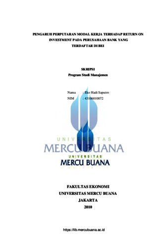 Saputro, Eko Hadi (2010) PENGARUH KEPUTUSAN MODAL KERJA TERHADAP RETURN ON INVESTMENT PADA PERUSAHAAN BANK YANG TERDAFTAR DI BEI. S1 thesis, Universitas Mercu Buana.