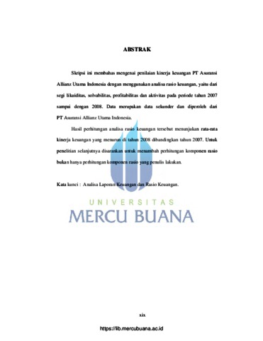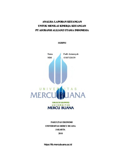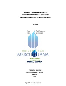 Armansyah, Fadli (2010) ANALISA LAPORAN KEUANGAN UNTUK MENILAI KINERJA KEUANGAN PT. ASURANSI ALLIANZ UTAMA INDONESIA. S1 thesis, Universitas Mercu Buana.