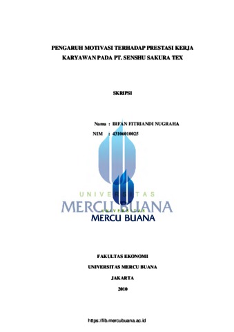 Nugraha, Irfan Fitriandi (2010) PENGARUH MOTIVASI TERHADAP PRESTASI KERJA KARYAWAN PADA PT.SENSHU SAKURA TEX. S1 thesis, Universitas Mercu Buana.