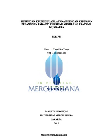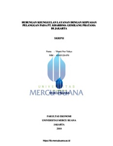 Yahya, Yhanti Nur (2010) HUBUNGAN KEUNGGULAN LAYANAN DENGAN KEPUASAN PELANGGAN PADA PT.KHARISMA GEMILANG PRATAMA DI JAKARTA. S1 thesis, Universitas Mercu Buana.