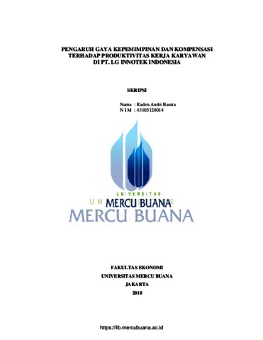 Barata, Raden Andri (2010) PENGARUH GAYA KEPEMIMPINAN DAN KOMPENSASI TERHADAP PRODUKTIVITAS KERJA KARYAWAN DI PT.LG INNOTEK INDONESIA. S1 thesis, Universitas Mercu Buana.