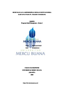 Khafi, Muhammad (2010) HUBUNGAN GAYA KEPEMIMPINAN DENGAN MOTIVASI KERJA KARYAWAN PADA PT TELKOM TANGGERANG. S1 thesis, Universitas Mercu Buana.