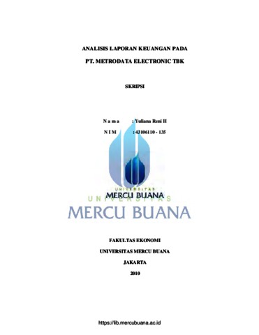 HARDANINGSIH, YULIANA RENI (2010) ANALISA LAPORAN KEUANGAN PADA PT METRODATA ELECTRONIC TBK. S1 thesis, Universitas Mercu Buana.