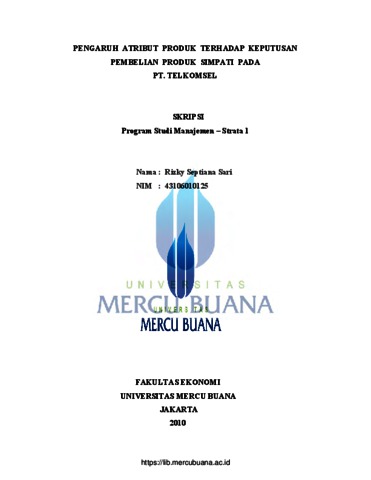 Sari, Rizky Septiana (2010) PENGARUH ATRIBUT PRODUK TERHADAP KEPUTUSAN PEMBELIAN PRODUK SIMPATI PADA PT. TELKOMSEL. S1 thesis, Universitas Mercu Buana.