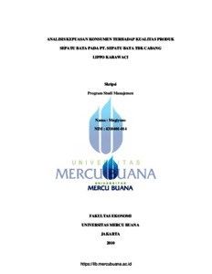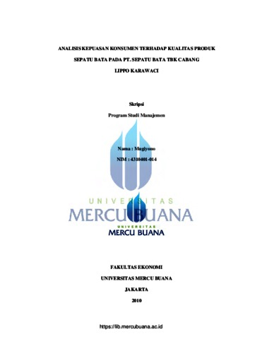 Mugiyono, Mugiyono (2010) ANALISIS KEPUASAN KONSUMEN TERHADAP KUALITAS PRODUK SEPATU BATA PADA PT. SEPATU BATA, TBK CABANG LIPPO KARAWACI. S1 thesis, Universitas Mercu Buana.