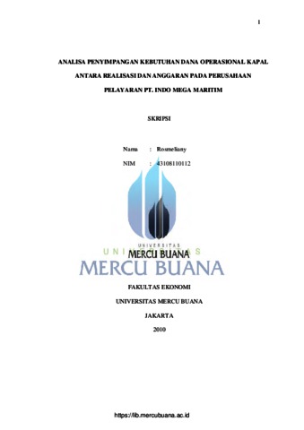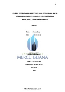 Rosmeliany, Rosmeliany (2010) ANALISA PENYIMPANGAN KEBUTUHAN DANA OPERASIONAL KAPAL ANTARA REALISASI DAN ANGGARAN PADA PERUSAHAAN PELAYARAN PT.INDO MEGA MARITIM. S1 thesis, Universitas Mercu Buana.