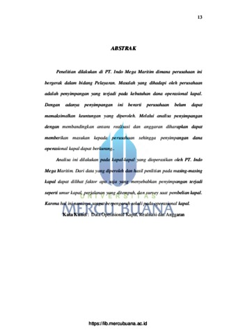 Penelitian dilakukan di PT. Indo Mega Maritim dimana perusahaan ini bergerak dalam bidang Pelayaran. Masalah yang dihadapi oleh perusahaan adalah penyimpangan yang terjadi pada kebutuhan dana operasional kapal. Dengan adanya penyimpangan ini berarti perusahaan belum dapat memaksimalkan keuntungan yang diperoleh. Melalui analisa penyimpangan dengan membandingkan antara realisasi dan anggaran diharapkan dapat memberikan masukan kepada perusahaan sehingga penyimpangan dana operasional kapal dapat berkurang.. Analisa ini dilakukan pada kapal-kapal yang dioperasikan oleh PT. Indo Mega Maritim. Dari data yang diperoleh dan hasil penlitian pada masing-masing kapal dapat dilihat faktor apa saja yang menyebabkan penyimpangan terjadi seperti umur kapal, perjalanan yang ditempuh, dan survey saat pembelian kapal. Karena hal ini nantinya sangat berpengaruh sekali pada operasional kapal. Kata Kunci : Data Operasional Kapal, Realisasi dan Anggaran