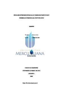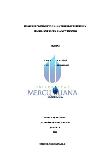 Nursini, Nursini (2010) PENGARUH PROMOSI PENJUALAN TERHADAP KEPUTUSAN PEMBELIAN PRODUK KIA PICANTO. S1 thesis, Universitas Mercu Buana.