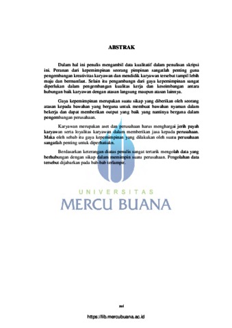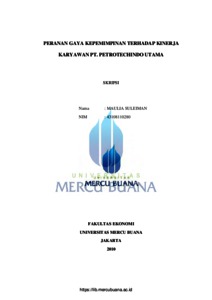 Suleiman, Maulia (2010) PERANAN GAYA KEPEMIMPINAN TERHADAP KINERJA KARYAWAN PT. PETROTECHINDO UTAMA. S1 thesis, Universitas Mercu Buana.