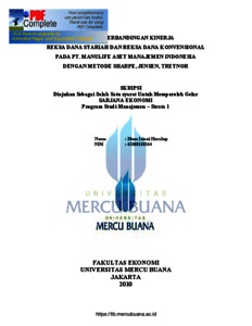 Harahap, Hana Iriani (2010) ANALISIS PERBANDINGAN KINERJA REKSA DANA SYARIAH DAN REKSA DANA KONVENSIONAL PADA PT. MANULIFE ASET MANAJEMEN INDONESIA DENGAN METODE SHARPE, JENSEN, TREYNOR. S1 thesis, Universitas Mercu Buana.