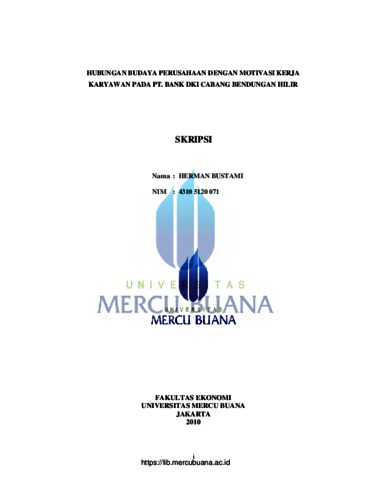 Bustami, Herman (2010) HUBUNGAN BUDAYA PERUSAHAAN DENGAN MOTIVASI KERJA KARYAWAN PADA PT. BANK DKI CABANG BENDUNGAN HILIR. S1 thesis, Universitas Mercu Buana.
