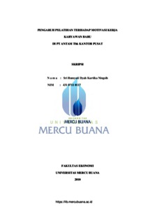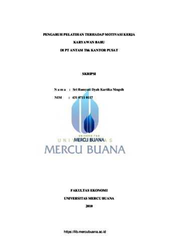 Ningsih, Sri Rumyati Dyah Kartika (2010) PENGARUH PELATIHAN TERHADAP MOTIVASI KERJA KARYAWAN BARU DI PT. ANTAM TBK KANTOR PUSAT. S1 thesis, Universitas Mercu Buana.