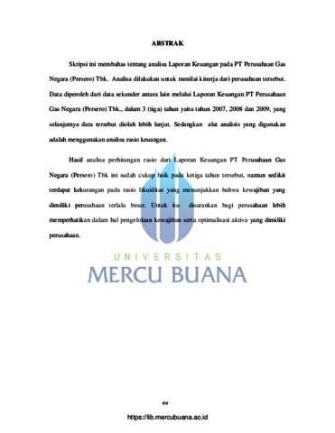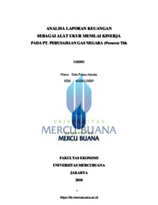 Atmani, Selo Purna (2010) ANALISA LAPORAN KEUANGAN SEBAGAI ALAT UKUR MENILAI KINERJA PADA PT. PERUSAHAAN GAS NEGARA (PERSERO) TBK. S1 thesis, Universitas Mercu Buana.