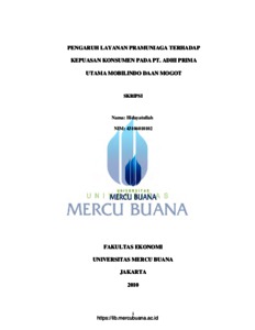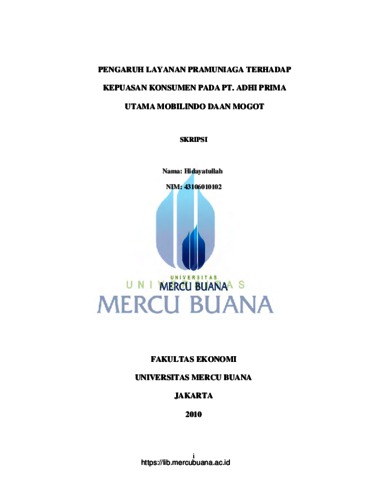 Hidayatullah, Hidayatullah (2010) PENGARUH LAYANAN PRAMUNIAGA TERHADAP KEPUASAN KONSUMEN PADA PT.ADHI PRIMA UTAMA MOBILINDO DAAN MOGOT,JAKARTA. S1 thesis, Universitas Mercu Buana.