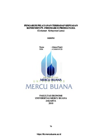 Pajali, Ahmad (2010) PENGARUH PELAYANAN TERHADAP KEPUASAN KONSUMEN PT.INDOMARCO PRISMATAMA. S1 thesis, Universitas Mercu Buana.