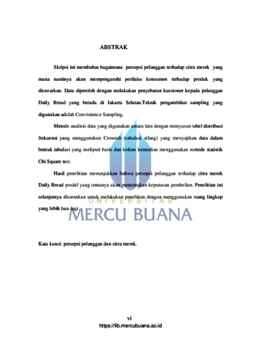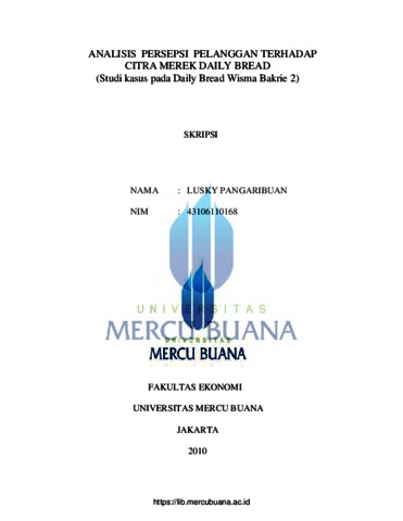 Pangaribuan, Lusky (2010) ANALISIS PERSEPSI PALANGGAN TERHADAP CITRA MEREK DAILY BRAD (Studi Kasus Pada Daily Bread Wisma Bakrie 2). S1 thesis, Universitas Mercu Buana.