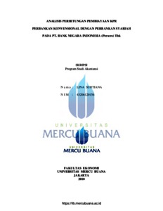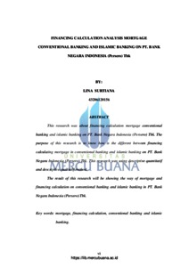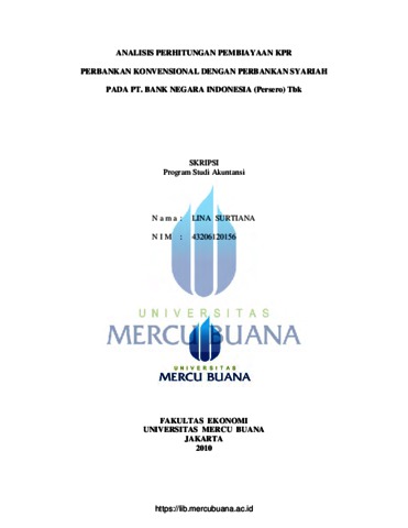 Surtiana, Lina (2010) ANALISIS PERHITUNGAN PEMBIAYAAN KPR PERBANKAN KONVENSIONAL DENGAN PERBANKAN SYARIAH PADA PT.BANK NEGARA INDONESIA (persero) Tbk. S1 thesis, Universitas Mercu Buana.