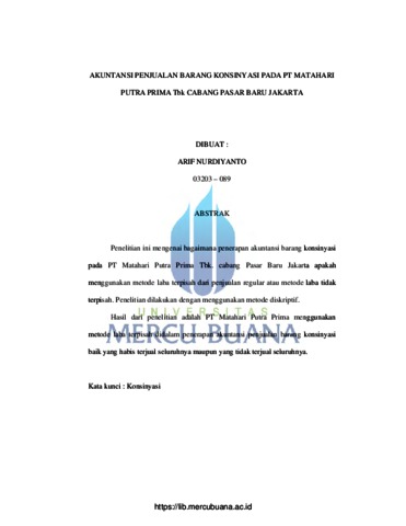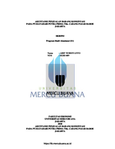 Nurdiyanto, Arif (2010) AKUNTANSI PENJUALAN BARANG KONSINYASI PADA PT.MATAHARI PUTRA PRIMA TBK,CABANG PASAR BAROE JAKARTA. S1 thesis, Universitas Mercu Buana.