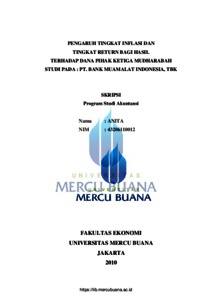 Anita, Anita (2010) PENGARUH TINGKAT INFLASI DAN TINGKAT RETURN BAGI HASIL TERHADAP DANA PIHAK KETIGA MUDHARABAH STUDI PADA PT.BANK MUAMALAT INDONESIA,Tbk. S1 thesis, Universitas Mercu Buana.
