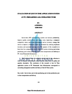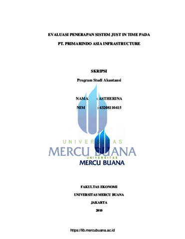 Astherina, Astherina (2010) EVALUASI PENERAPAN SISTEM JUST IN TIME PADA PT.PRIMARINDO ASIA INFRASTRUCTURE. S1 thesis, Universitas Mercu Buana.
