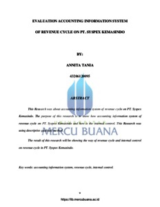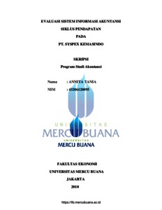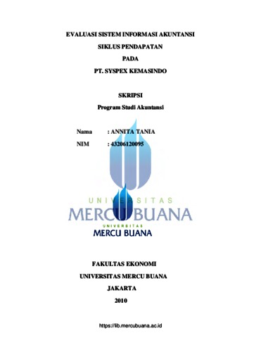 Tania, Annita (2010) EVALUASI SISTEM INFORMASI AKUTANSI SIKLUS PENDAPATAN PADA PT.SYSPEX KEMASINDO. S1 thesis, Universitas Mercu Buana.