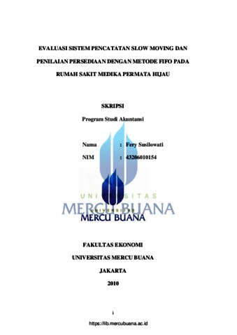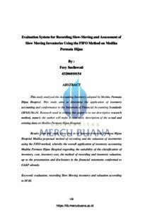 Susilowati, Fery (2010) EVALUASI SISTEM PENCATATAN SLOW MOVING DAN PENILAIAN PERSEDIAAN DENGAN METODE FIFO PADA RUMAH SAKIT MEDIKA PERMATA HIJAU. S1 thesis, Universitas Mercu Buana.