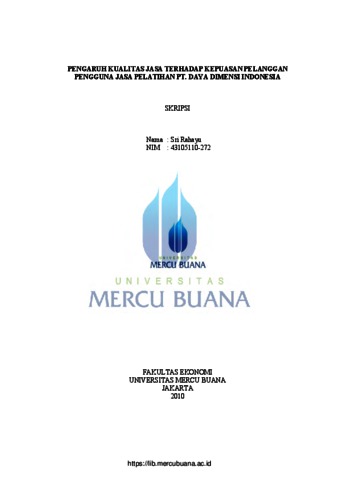 Rahayu, Sri (2010) PENGARUH KUALITAS JASA TERHADAP KEPUASAN PELANGGAN PENGGUNA JASA PELATIHAN PT.DAYA DIMENSI INDONESIA. S1 thesis, Universitas Mercu Buana.