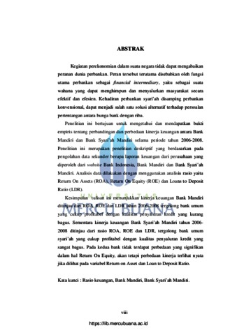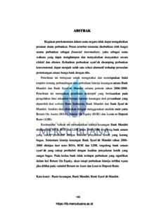 Twindiarti, Dyah Apri (2010) ANALISIS PEBANDINGAN KINERJA KEUANGAN BANK MANDIRI DAN BANK SYARIAH MANDIRI PERIODE TAHUN 2006 - 2008. S1 thesis, Universitas Mercu Buana.