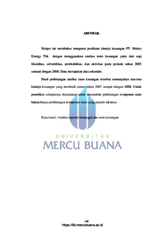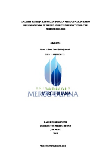 Sulistiyawati, Sinta Dewi (2010) ANALISIS KINERJA KEUANGAN DENGAN MENGGUNAKAN RASIO KEUANGAN PADA PT MEDCO ENERGY INTERNATIONAL TBK PERIODE 2005-2008. S1 thesis, Universitas Mercu Buana.
