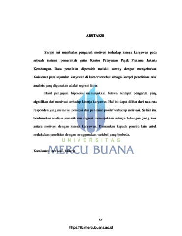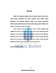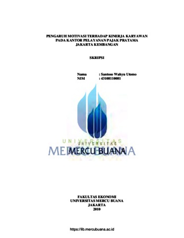 Utomo, Santoso Wahyu (2010) PENGARUH MOTIVASI TERHADAP KINERJA KARYAWAN PADA KANTOR PELAYANAN PAJAK PRATAMA JAKARTA KEMBANGAN. S1 thesis, Universitas Mercu Buana.