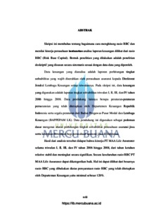 Ramdian, Reza (2010) ANALISIS RISK BASE CAPITAL UNTUK MENILAI KINERJA PERUSAHAAN PADA PT. MAA LIFE ASSURANCE. S1 thesis, Universitas Mercu Buana.