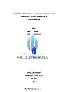 Ronald, Ronald (2010) ANALISA LAPORAN KEUANGAN PERUSAHAAN TELEKOMUNIKASI DI INDONESIA DENGAN METODE CAMP. S1 thesis, Universitas Mercu Buana.