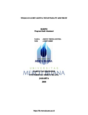 Tringanitha, Reny (2010) TINJAUAN AUDIT AKTIVA TETAP PADA PT. AIM TRUST. S1 thesis, Universitas Mercu Buana.