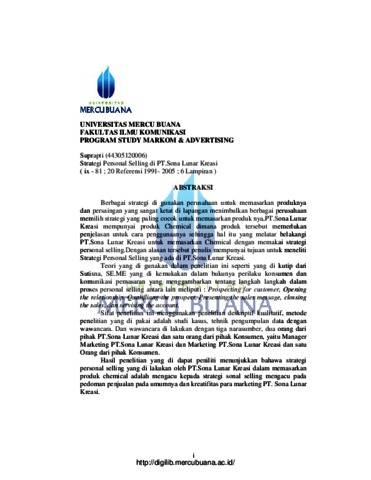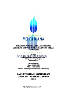 SUPRAPTI, SUPRAPTI (2010) STRATEGI PERSONAL SELLING PRODUK CHEMICAL OSBOND DI PT. SONA LUNAR KREASI TAHUN 2008. S1 thesis, Universitas Mercu Buana Jakarta.