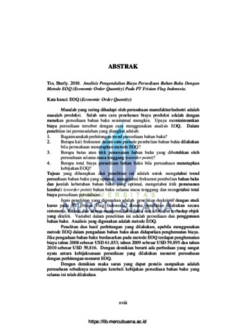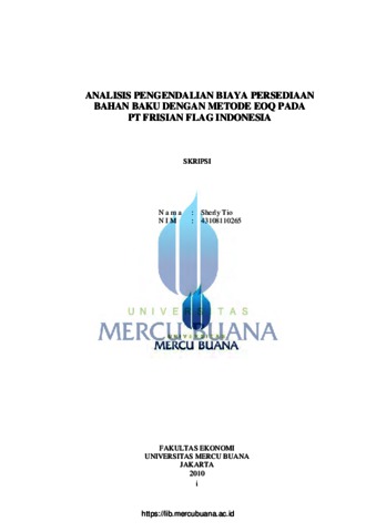 Tio, Sherly (2010) ANALISIS PENGENDALIAN BIAYA PERSEDIAAN BAHAN BAKU DENGAN METODE EOQ PADA PT FRISIAN FLAG INDONESIA. S1 thesis, Universitas Mercu Buana.