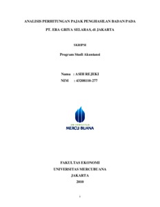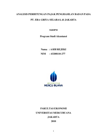 Rejeki, Asih (2010) ANALISIS PERHITUNGAN PAJAK PENGHASILAN BADAN PADA PT.ERA GRIYA SELARAS, DI JAKARTA. S1 thesis, Universitas Mercu Buana.