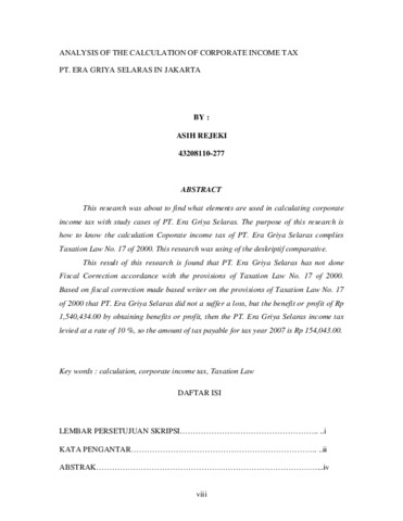 ANALISIS PERHITUNGAN PAJAK PENGHASILAN BADAN PADA PT.ERA GRIYA SELARAS, DI JAKARTA
