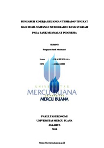 Rusdiana, Eka (2010) PENGARUH KIENRJA KEUANGAN TERHADAP TINGKAT BAGI HASIL SIMPANAN MUDHARABAH BANK SYARIAH PADA BANK MUAMALAT INDONESIA. S1 thesis, Universitas Mercu Buana.