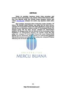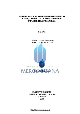 Rachmasari, Dian (2010) ANALISA LAPORAN KEUANGAN UNTUK MENILAI KINERJA PERUSAHAAN PADA KELOMPOK INDUSTRI TELEKOMUIKASI. S1 thesis, Universitas Mercu Buana.