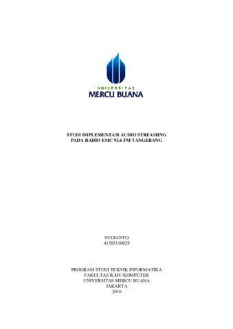 SUGIANTO, SUGIANTO (2010) STUDI IMPLEMENTASI AUDIO STREAMING PADA RADIO EMC 93.6 FM TANGERANG. S1 thesis, Universitas Mercu Buana Jakarta.