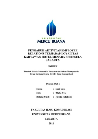 YUNI, SARI (2010) PENGARUH AKTIVITAS EMPLOYEE RELATIONS TERHADAP LOYALITAS KARYAWAN HOTEL MENARA PENINSULA JAKARTA. S1 thesis, Universitas Mercu Buana Jakarta.