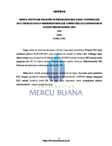 Sidah, Sidah (2010) MODUL SOFTWARE PRAKTIKUM PRORAMMABLE LOGIC CONTROLLER AT89S52 MELALUI KONEKTOR IN SYSTEM PROGRAMMING ( ISP ). S1 thesis, Universitas Mercu Buana.